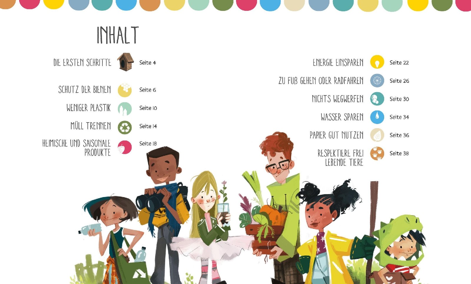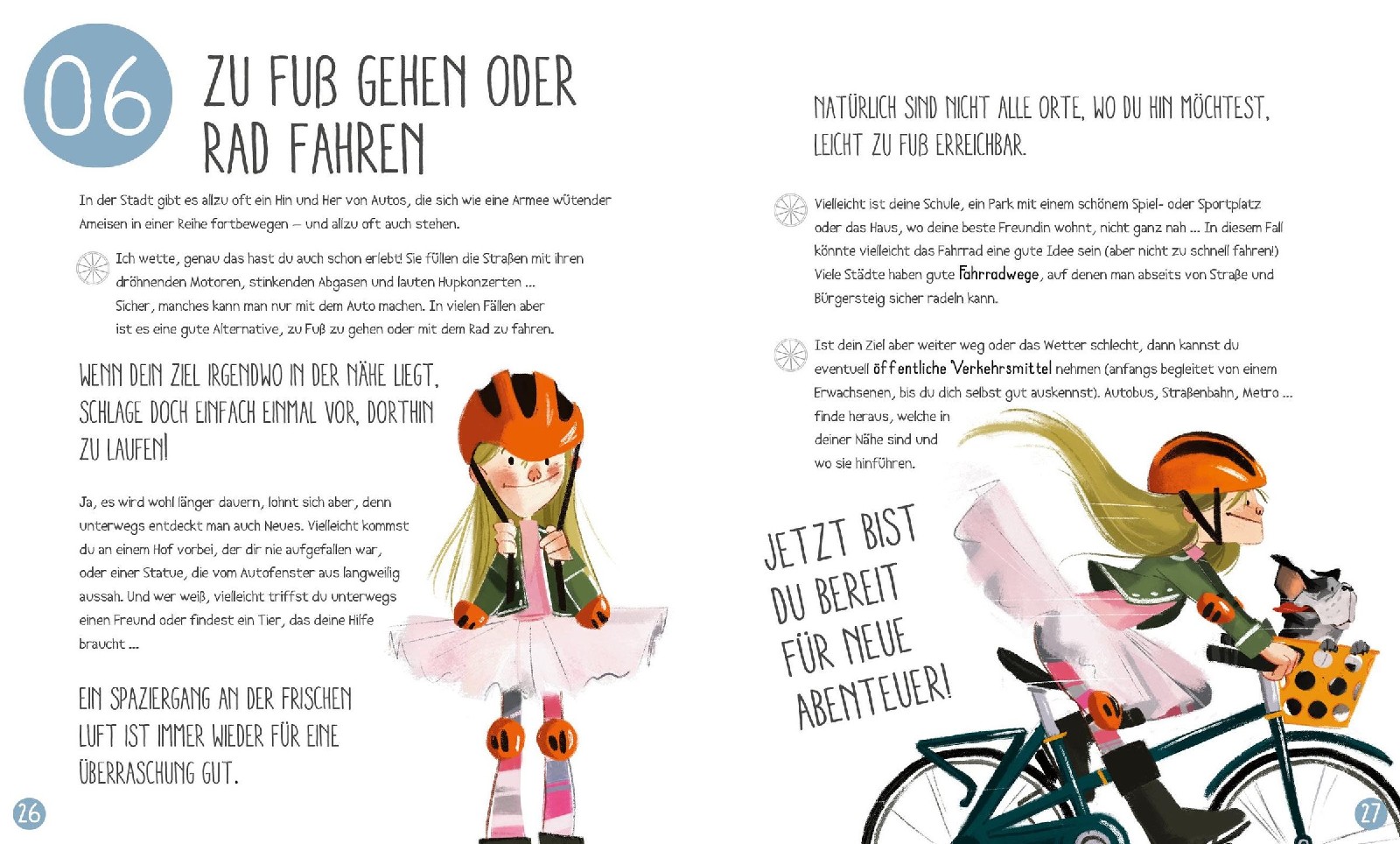Eine Bienen-Oase anlegen. Lokale und saisonale Produkte verspeisen. Geräte ausschalten und Energie einsparen. Kreativ recyceln: Seite für Seite kannst du in diesem lustig gestalteten Buch praktische Ideen entdecken, mit denen du unkompliziert und aktiv zu einer lebenswerteren Umwelt beiträgst. Hier findest du 10 kleine, aber nachhaltige Aktionen, in denen sich Kinder deines Alters jeden Tag zu Hause, in der Schule, in ihrer Stadt engagieren und nach und nach große Veränderungen bewirken können. Dazu gibt es für dich spannendes Hintergrundwissen. Umweltschutz gelingt, wenn alle mitmachen und mitmachen ist gar nicht so schwer!