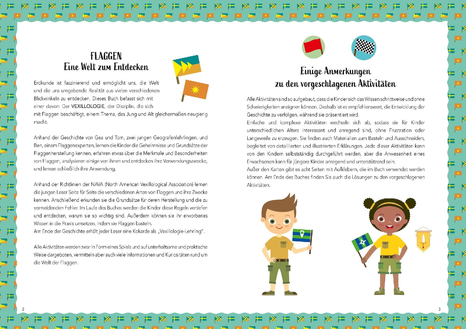 Eine Flagge ist nicht nur ein Stück Stoff mit Zeichen darauf wie Streifen, Tiere, Rauten, Monde ... eine Flagge steht auch für die Kultur und Geschichte eines Landes. Die Farben- und Formenvielfalt ist groß. Begleite die Freunde Gea, Tom und Ben durch diese bunte Welt. In diesem Aktivitätsbuch entdeckst du ihre Anfänge in der Ritterzeit, lernst alles über Symbolik, Botschaft und Verwendung. Du entdeckst jede Menge knifflige Spiele und Aufgaben rund um Flaggen, Banner und Fahnen: ein Flaggen-Sudoku, das Flaggen-Alphabet, um mit Schiffen auf See zu kommunizieren, und natürlich die fünf Gestaltungsprinzipien, mit deren Hilfe du richtige Flaggen selbst gestaltest.