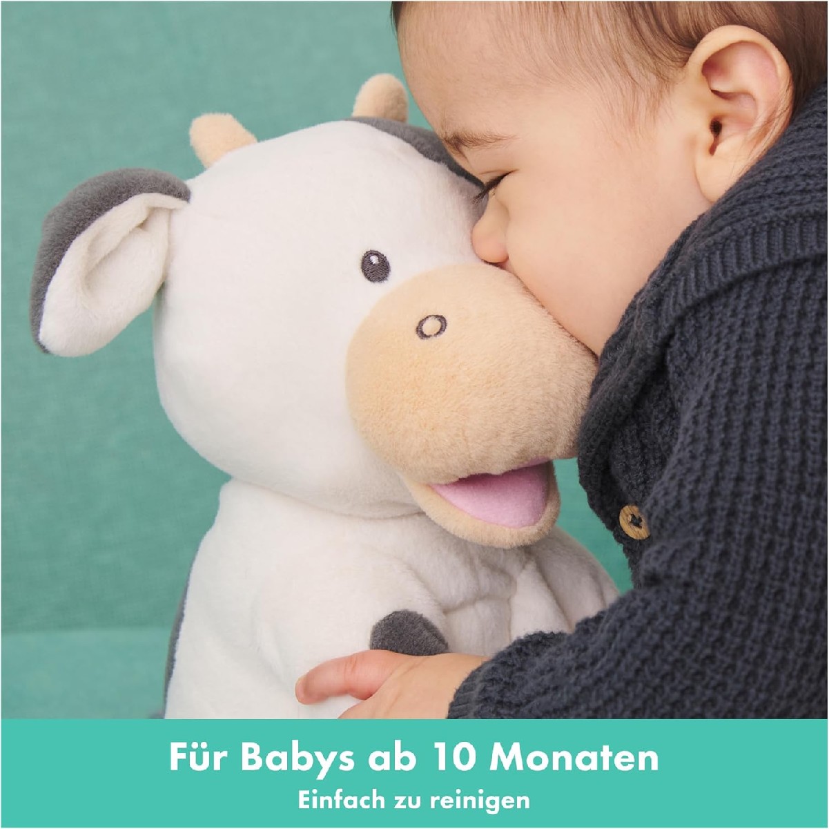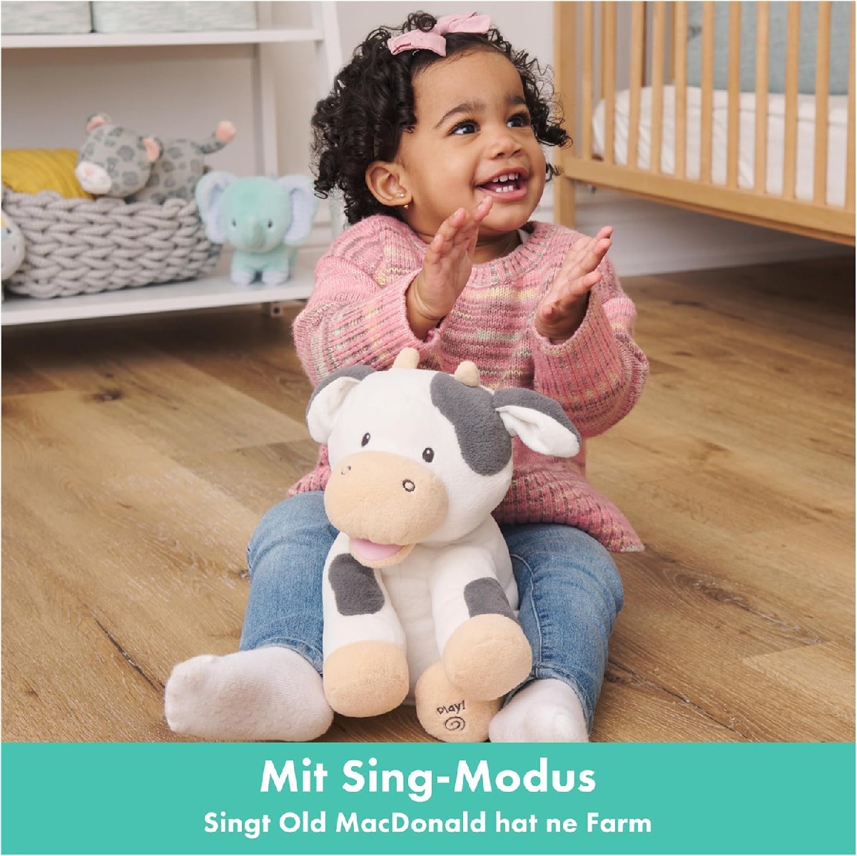 Babys und Kleinkinder lieben Musik und Gesang, besonders dann, wenn Kinder für sie singen. Daher ist Buttermilch, die Kuh, des Traditionsherstellers GUND ideal für die Kleinsten, denn sie singt mit niedlicher Kinderstimme Old MacDonald hat ne Farm. Dazu bewegt sie Mund und Ohren. Im Spiel-Modus spricht sie das Kind sogar direkt an und animiert es, Tierlaute zu lernen, mitzumachen und auszuprobieren. Zusammen mit Mama oder Papa, Oma oder Opa machen selbst die Jüngsten schon mit. Ältere Kleinkinder können die Kuh durch Drücken der Füße selbst aktivieren und freuen sich über dieses Erfolgserlebnis. Sie lernen spielerisch den Liedtext und singen bald gemeinsam mit Buttermilch. Die Firma GUND legt seit mehr als 120 Jahren wert auf Qualität, kindgerechtes Design und altersgerechte Funktionen. Da kleine Kinder oft nicht zimperlich mit ihren Lieblingstieren umgehen, ist Buttermilch trotz ihrer Funktionen robust genug, um groben Umgang zu verzeihen. Da Lieblingstiere immer und überall dabei sein müssen, bleiben Flecken und Verschmutzungen nicht aus. Diese lassen sich mit einem feuchten Tuch einfach abwischen. Das GUND Portfolio bietet neben der interaktiven Kuh auch Flappy, den singenden Elefanten und Flora, das Häschen. Außerdem gibt es Tiere aus 100% recyceltem Material für Kuscheln mit grünem Gewissen.