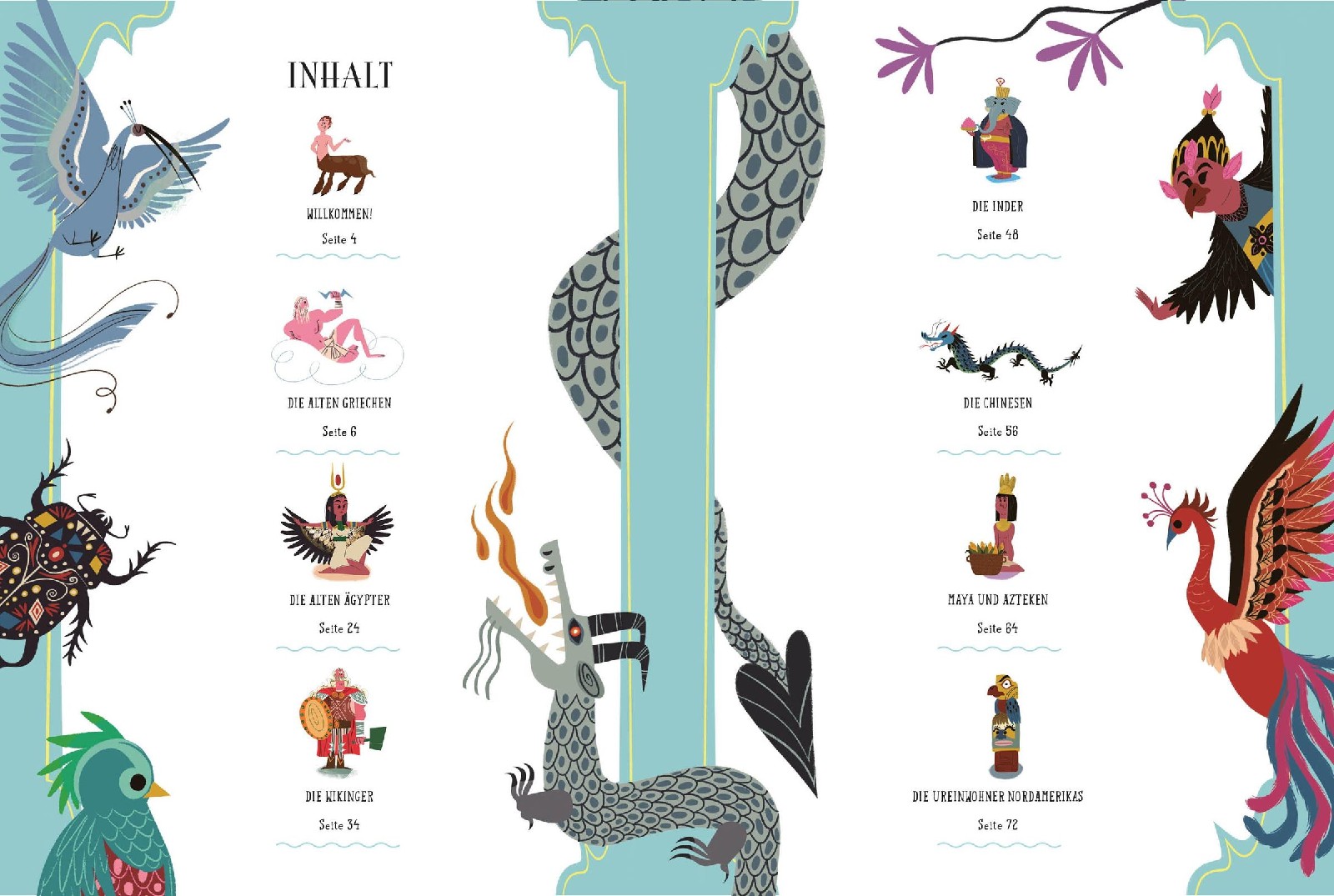 Heldensagen haben bis heute nichts von ihrer Spannung verloren, tummeln sich dort doch die seltsamsten Gestalten und Geschöpfe wie Sirenen, Zyklopen, Trolle oder Zentauren. Der vierhändige Vishnu, der unverwundbare Achilles, der blaue Drache: Sie entstammen dieser mystischen Welt der Götter, der legendären Helden und der erstaunlichsten magischen Kreaturen. Fast alle Völker der Erde haben ihre eigenen Mythen mit Göttern, Helden, Ungeheuern und Abenteurern, die du nun auf deinem spannenden Trip um die ganze Welt kennenlernst, von China bis Indien, von den Azteken bis zu den Wikingern. Großer Anschauspaß ist garantiert, möge die Reise beginnen!