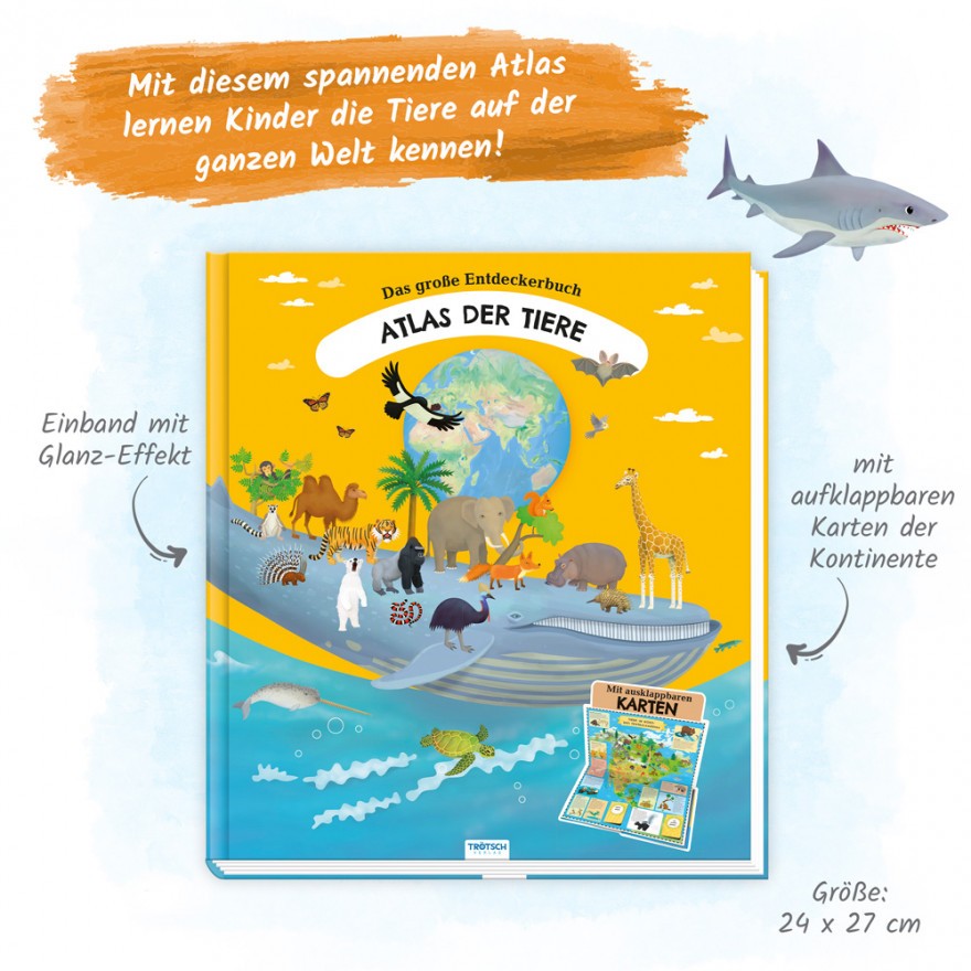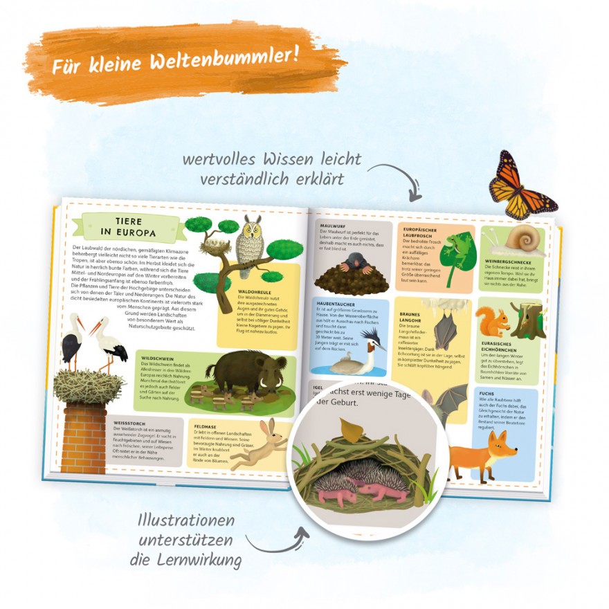 Tauchen wir ein in die faszinierende Welt der Tiere: Was macht das Opossum, wenn es in Gefahr ist? Legt ein Schnabeltier wirklich Eier? Und wie sehen Flugdrache, Mondfisch oder Wombat aus? Dieser wundervoll illustrierte Atlas hat auf diese und viele weitere Fragen Antworten. Große Aufklappseiten und Extra-Heftchen bergen viele Fakten und Wissenswertes über die Tiere der Welt, ihre Verhaltensweisen und Lebensräume. Ein toller Atlas für Tierfreunde und kleine Weltenbummler!