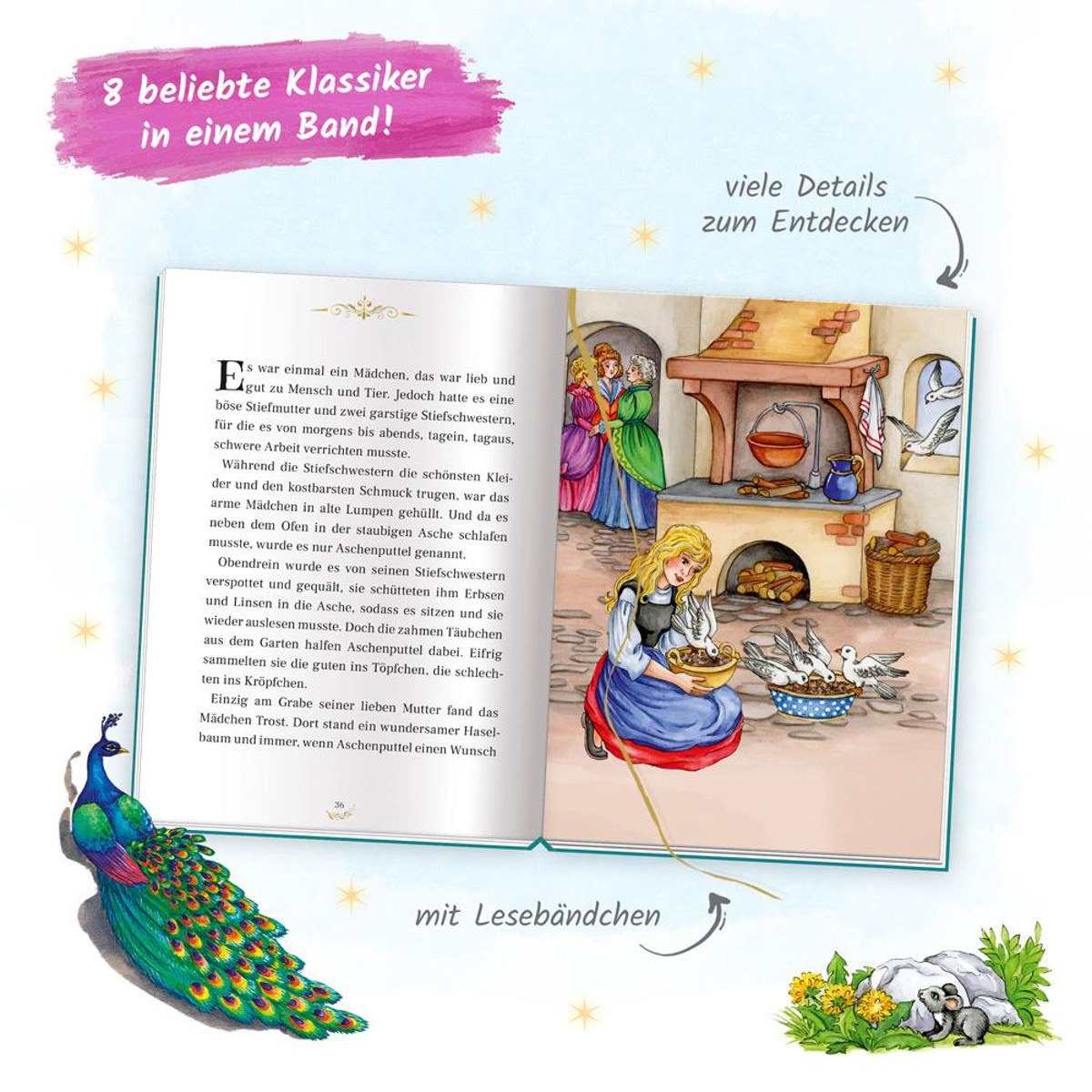 Dieses bezaubernde Geschichtenbuch lässt mit wunderschönen Illustrationen die beliebtesten Märchen lebendig werden: Der gestiefelte Kater, Hänsel und Gretel und weitere bekannte Figuren entführen in eine zauberhafte Märchenwelt. Ein Lesespaß für kleine und große Märchen-Fans!