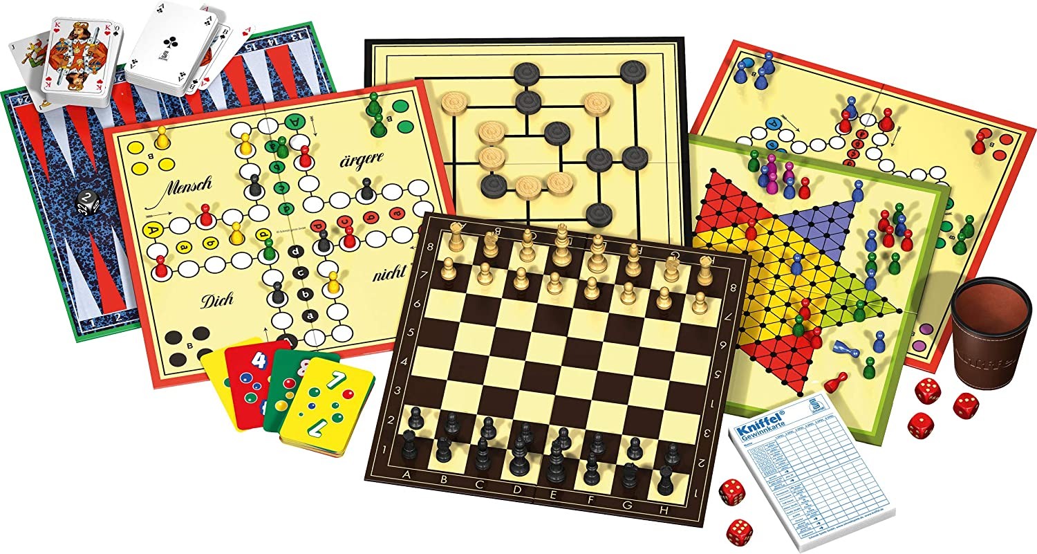 Eine Spielesammlung und 100 Möglichkeiten damit zu spielen, z. B. die Klassiker MENSCH ÄRGERE DICH NICHT, KNIFFEL, Mühle, Dame und noch 96 weitere!