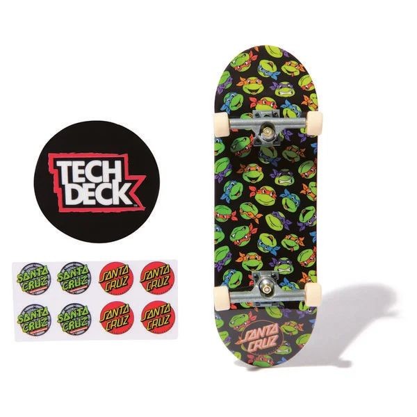 Das Tech Deck 96mm Board: 1 authentisches Finger-Skateboard mit beliebten Lizenzhelden und original Skate-Grafiken - für ein absolut cooles Fingerboard-Erlebnis. Bekannte Skate-Marken kombiniert mit beliebten Lizenzhelden: The Simpsons, Teenage Mutant Hero Turtles. Sponge Bob, Sonic the Hedgehog u.v.m. Der Einstiegspreispunkt in die Tech Deck-Kategorie, zum Spielen und Sammeln. Enthält alles, was man zum Boarden braucht: 1 Fingerboard (teilweise charakter-geformt), 1 Aufkleber-Bogen zur Skate-Marke.