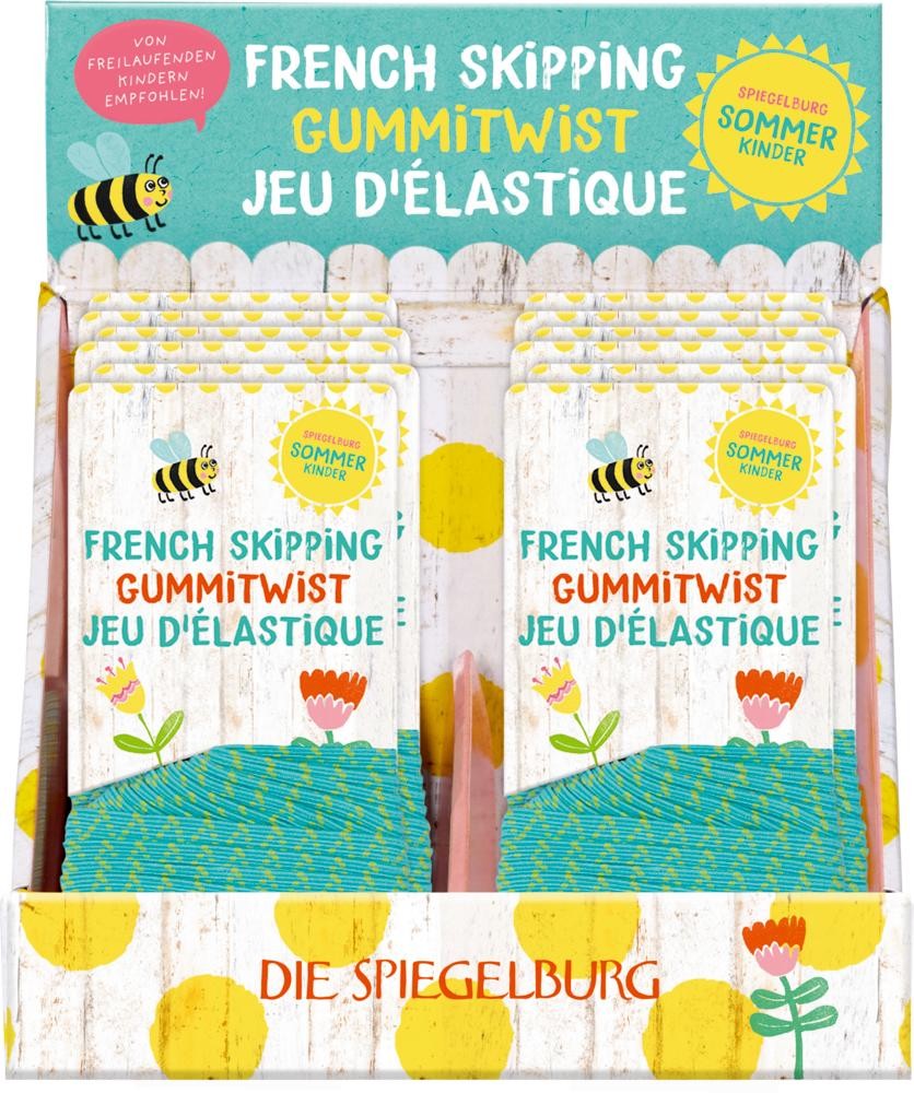 Der Spieleklassiker im frisch-fröhlichen Frühlingsdesign. Gummitwist-Band mit 280 cm Länge. Für Hüpfspaß Zuhause und den Schulhof, fördert Geschicklichkeit und Körperbeherrschung.