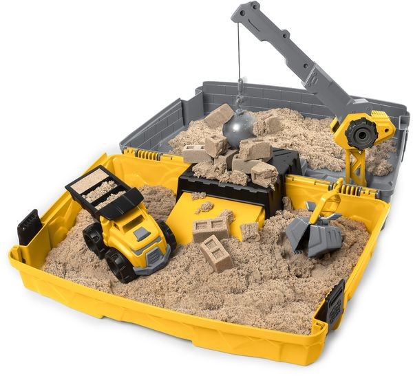 Vorschulkinder sind von Baustellen fasziniert. Mit diesem Koffer mit 907 g original Kinetic Sand aus Schweden hält die Baustelle im Kinderzimmer Einzug. Der Koffer sorgt dabei als Spielfläche und zur Aufbewahrung, damit der Sand dort bleibt, wo er hingehört. Mit dem enthaltenen Zubehör kann gebaggert, gebaut, abgerissen und abtransportiert werden. Da der magisch fließende Sand an sich selbst haftet, lässt er sich besonders gut formen und behält beim Spielen seine Form. Die echte Sandhaptik fördert die Entwicklung des Tastsinns, das Formen und Modellieren die Feinmotorik und das Rollenspiel regt Fantasie und Kreativität an. Dieser Zaubersand bietet stundenlange Beschäftigung für Kinder ab 3 Jahren. Seine optimale Textur besitzt Kinetic Sand bei ca. 60% Luftfeuchtigkeit. Ist die Raumluft zu trocken, einfach ein paar Tropfen Wasser unterkneten oder mit Wasser besprühen. Der Baustellen Koffer ist das ideale Geschenk für Kinder, die gelbe Baustellenfahrzeuge lieben und vom Bauen und Einreißen nicht genug bekommen können. Inhalt: 1 Koffer, 907 g Kinetic Sand naturbraun, 1 Kranarm mit Abrissbirne und Baggerschaufel, 1 Ziegelförmchen, 1 Baustellenfahrzeug mit Kippmulde, 1 Anleitung