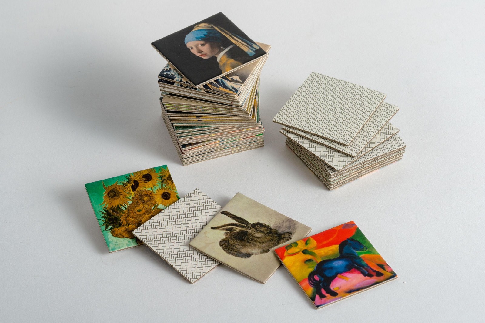 Wo liegt noch mal die Mona Lisa? Und wer findet zuerst den Wanderer über dem Nebelmeer? Kunstliebhaber kommen bei diesem Memo-Spiel auf ihre Kosten. Die 20 schönsten Meisterwerke berühmter Künstler wie Dürer, Botticelli, Monet, Van Gogh, Klimt und Kandinsky von der Renaissance bis zur Moderne sind hier versammelt. Nach dem bekannten Prinzip des Memo-Spiels werden immer zwei Spielkarten aufgedeckt, die ein Bilderpaar ergeben.