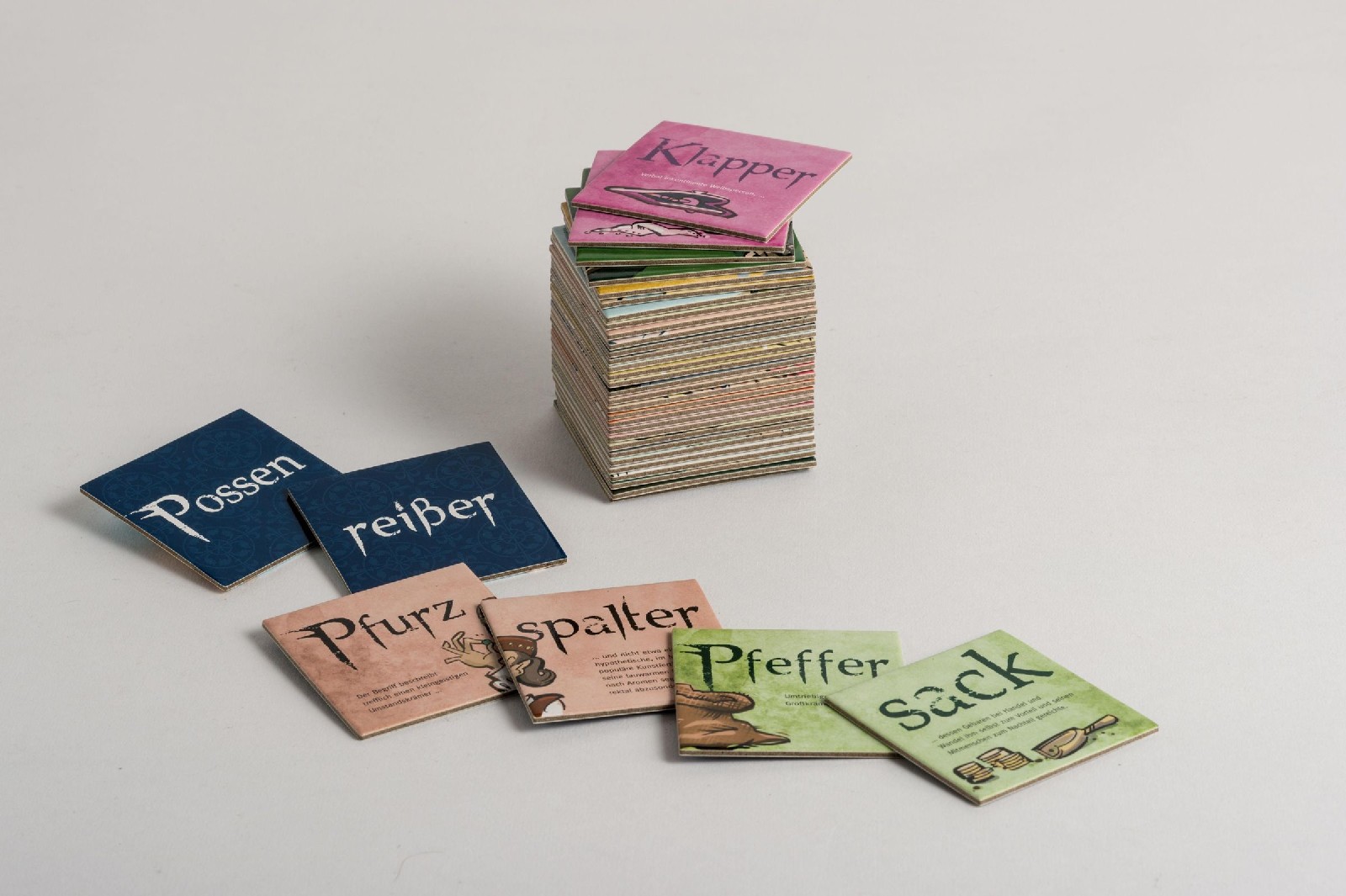 Oft hören, lesen und benutzen wir ein tolles Schimpfwort, wissen aber gar nicht, wo es herkommt und was es ursprünglich bedeutet. 'Prügelknaben' zum Beispiel gab es im 13. Jahrhundert tatsächlich. Sie wurden von der Straße geholt und anstelle des adligen Zöglings gezüchtigt. 'Spießbürger' waren ursprünglich ehrenwerte Bürger, die ihre Stadt im Angriffsfall mit dem Spieß verteidigten. Das Spiel enthält 20 mittelalterliche Schimpfwörter. Wie beim bekannten Memo-Spiel werden immer zwei Spielkarten aufgedeckt, die ein gebräuchliches Schimpfwort samt Erläuterung ergeben.