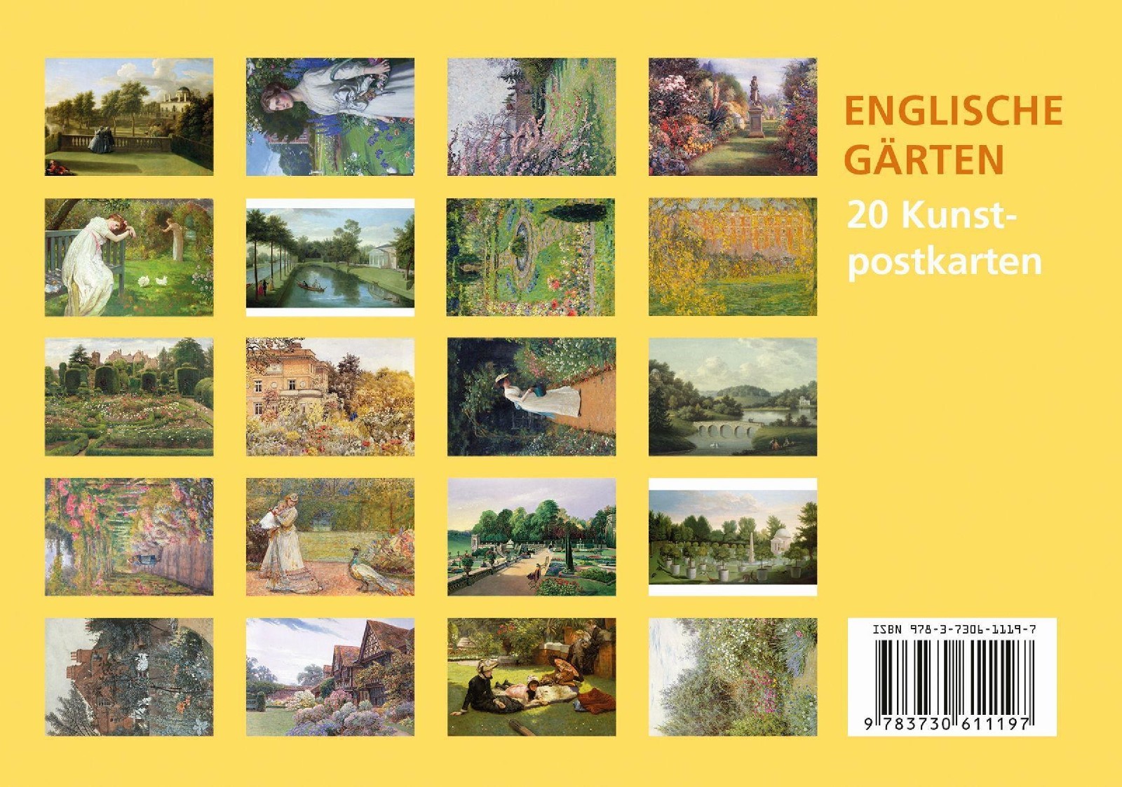 Die enorme Anziehungskraft englischer Gartenbaukunst ist bis heute ungebrochen. Als Idealisierung der Natur soll der Englische Garten natürlich erscheinen – und ist doch durchkomponiert, eine der Natur nachempfundene Landschaft. Geschwungene Wege, natürlich wirkende Gewässer sowie in Blickachsen positionierte Skulpturen, kleine Pavillons und Brücken oder künstliche Ruinen setzen pittoreske Akzente, Landschaftsgemälden gleich. Dass diese wiederum Künstler dazu inspirierten, sie auf Leinwand zu bannen, verwundert nicht. 20 der schönsten dieser Werke sind in diesem Postkarten-Set versammelt.