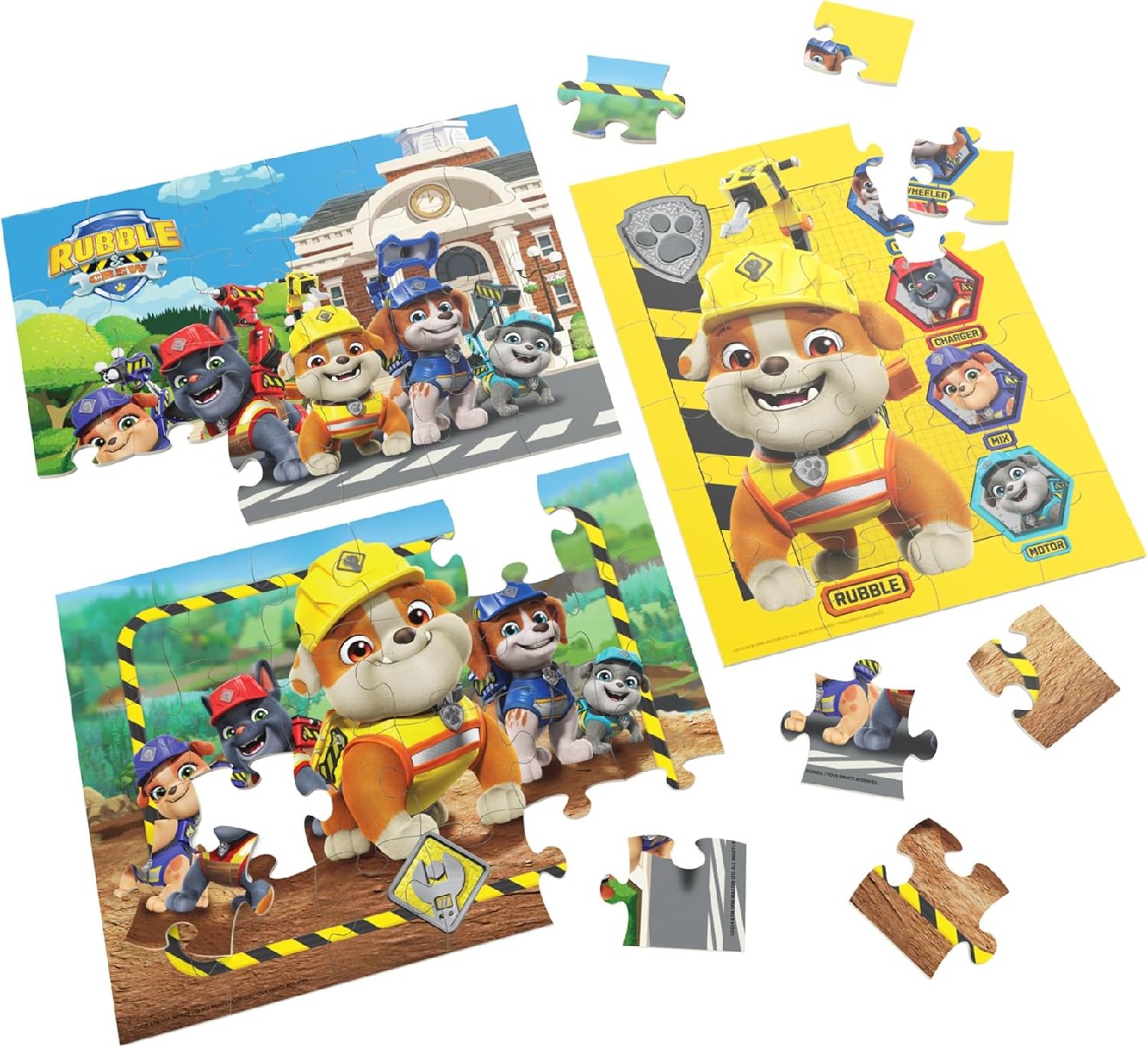 3 Holzpuzzle in einer stabilen Holzbox: Diese Puzzle-Sammlung mit 3 pfoten-tastischen Motiven ist genau das Richtige für alle Kinder, die nicht genug von Rubble & Crew bekommen können. Die drei 24-teiligen hochwertigen Holz-Puzzles können in der stabilen Holzbox mit 3 Fächern gut verstaut und transportiert werden. Die Rubble & Crew Holzpuzzle-Sammlung garantiert Puzzle-Spaß für alle kleinen und großen Fans von Rubble & Crew ab 3 Jahren.