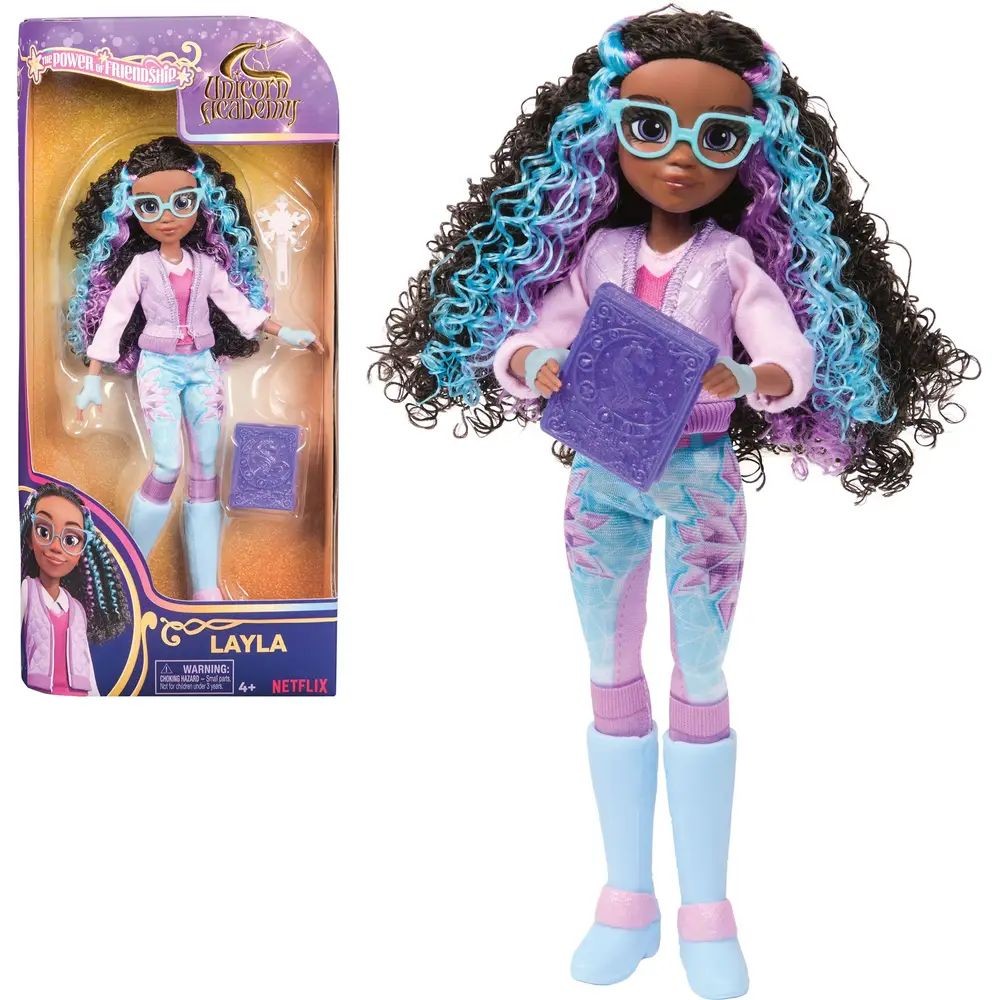 Die Unicorn Academy ist ein ganz besonderes Internat auf einer magischen Insel namens Unicorn Island. Hier müssen die SchülerInnen ihr seelenverwandtes Einhorn finden und mit ihm eine Verbindung aufbauen. Erst dann können sie gemeinsam das Böse bekämpfen. Passend zur Serie ist von Spin Master eine ganze Welt an Spielsachen erhältlich, so auch Ankleidepuppen der beliebtesten Charaktere der Serie im Sortiment: Ava, Isabel, Valentina und Layla. Die Schülerinnen der magischen Schule sehen in ihren Outfits im neuen Look und mit wunderschön gesträhnten Haaren zauberhaft aus und sind ca. 24 cm groß. Die abnehmbare Kleidung der Puppen besteht jeweils aus einem kompletten Outfit mit Top und Jacke oder Kleid, Reithose und Schuhen. Als Accessoires sind eine Bürste und ein individuelles Zubehör dabei. Die Puppen besitzen neun bewegliche Gelenke, damit sie auf ihren seelenverwandten Einhörnern (separat erhältlich) sitzen, die Zügel halten und reiten können. Die Ankleidepuppen sind ein tolles Geschenk für alle Kinder ab 4 Jahren, die Einhörner, Fashion und fantasievolle Rollenspiele lieben.