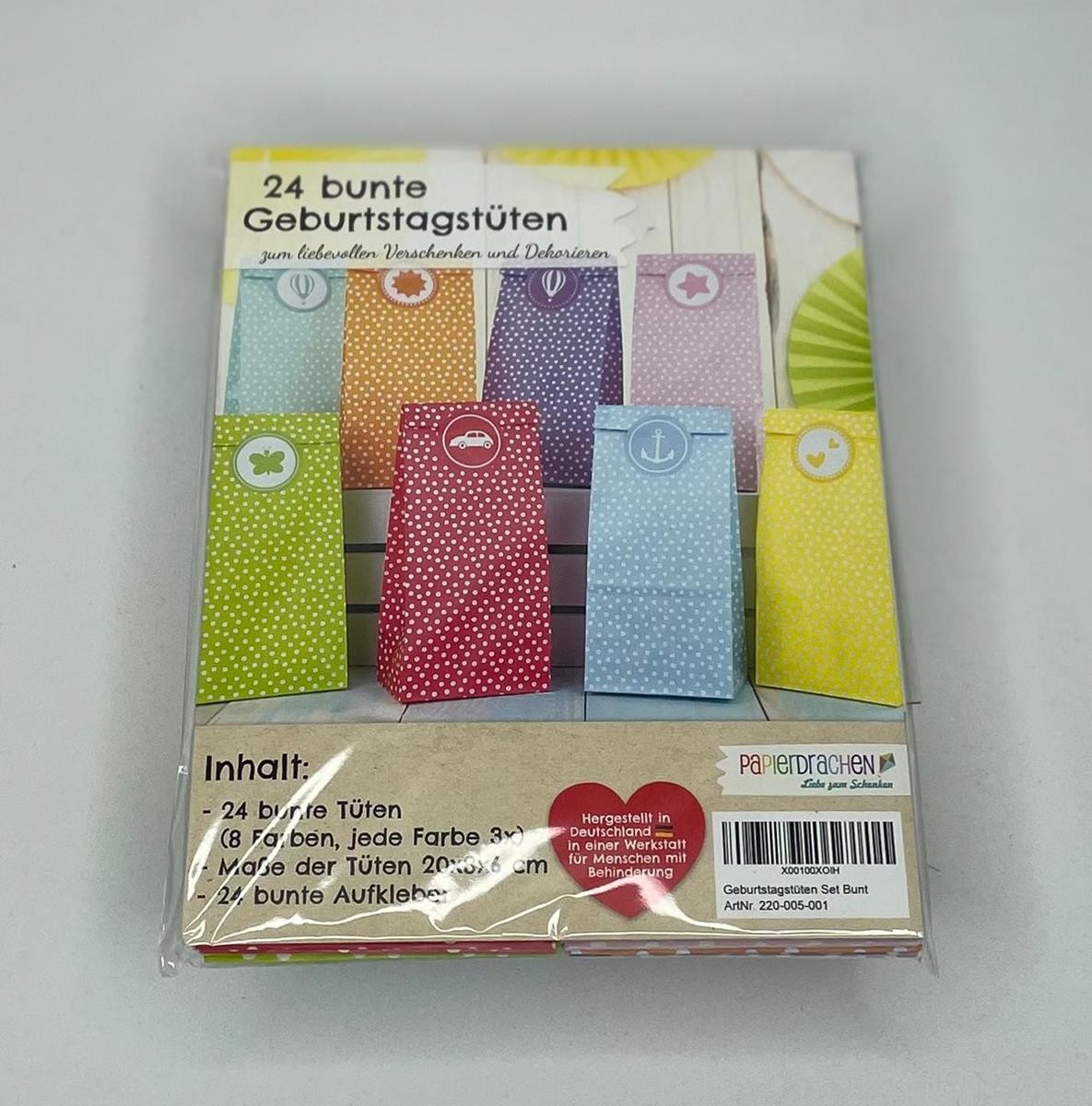 24 bunte Geburtstagstüten