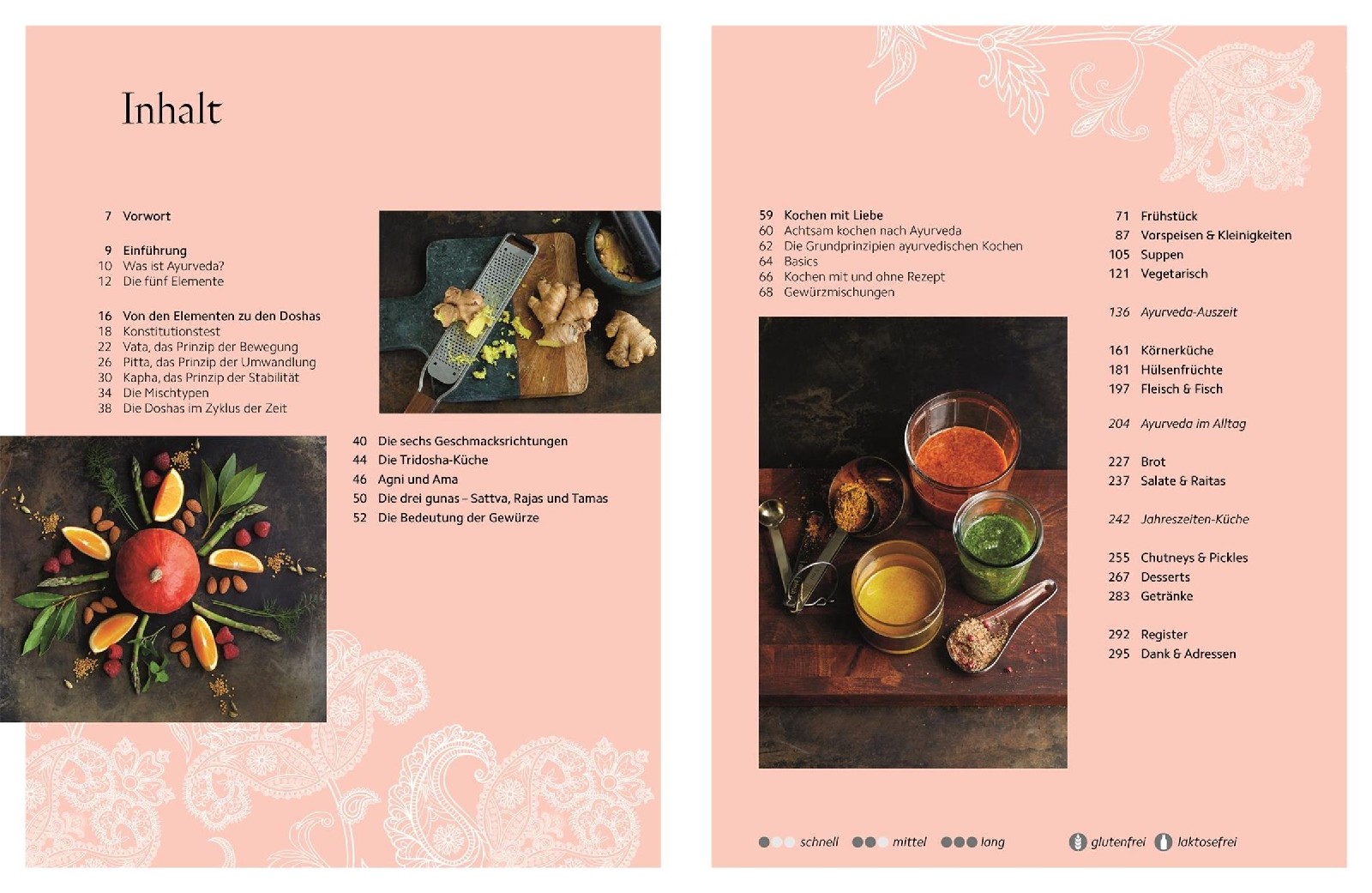 - 100 Rezepte für alle Doshas: überwiegend vegetarisch, aber auch mit Fisch und Fleisch