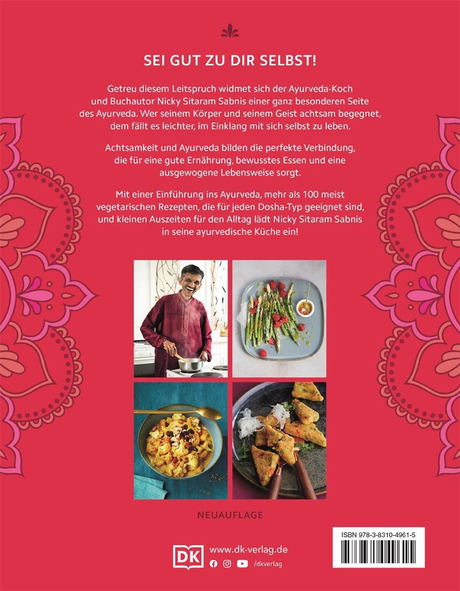 „Sei gut zu Dir selbst“ – getreu diesem Leitspruch widmet sich Deutschlands bekanntester Ayurveda-Koch und Buchautor Nicky Sitaram Sabnis einer besonderen Facette des Ayurveda: der Ernährung. In diesem Ratgeber zeigt er, wie Achtsamkeit, Ayurveda und Ernährung miteinander in Verbindung gebracht werden, um Stress zu bewältigen, Beschwerden zu lindern oder vorzubeugen und neue Kraft zu schöpfen. Die über 100 ayurvedischen Rezepte aus Nickys Tridosha-Küche lassen sich unkompliziert nachkochen und sind zugeschnitten auf die Bedürfnisse des jeweiligen Dosha-Typs.