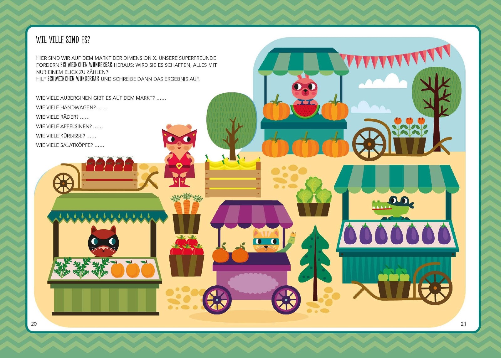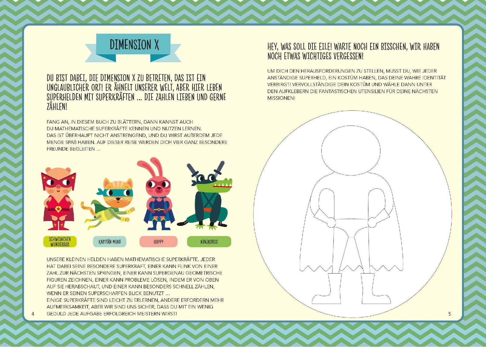 Jetzt triffst du echte Superhelden mit mathematischen Superkräften. Da ist Hüpferchen, die spielend von einer Zahl zur nächsten hüpft. Krokoninja ist ein Meister der perfekten Formen. Kapitän Mao löst Probleme ganz einfach, indem er sie von oben betrachtet und Wundermaia ist der Star beim Schnellzählen. Diese Superkräfte warten auch auf dich - du kann sie mit diesem Mitmachbuch prima erlernen. Nimm deine Buntstifte, die vielen Sticker im Buch und du kannst zusammen mit den Superhelden sofort loslegen mit dem Mathematik-Entdecken: Labyrinthspaß, Malen nach Zahlen, Zahlensuche, Tic-Tac-Toe ...