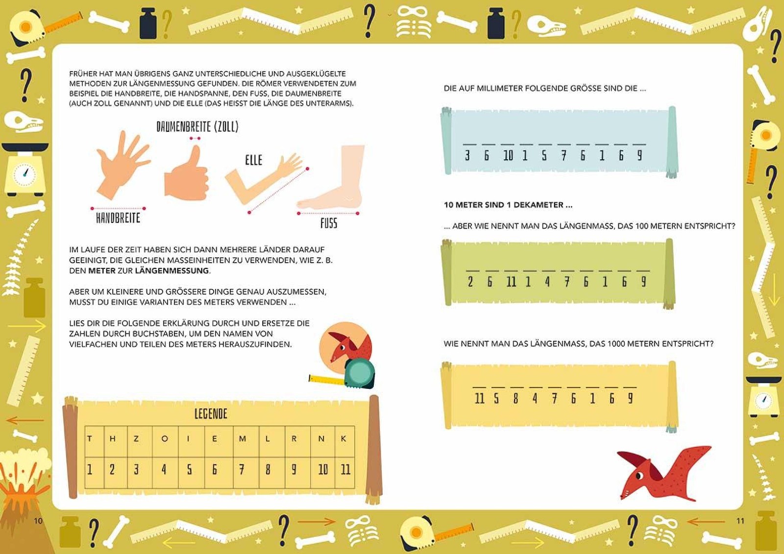 Wer wiegt halb so viel wie ein Bus? Der Ankylosaurus. Wessen Hals war so lang wie eine Rolltreppe? Das war der Brachiosaurus. Und in welches Saurierei passten drei Flaschen Milch? Ins Ei des Hypselosaurus. Bei Spielen und spannenden Aufgaben im Dino-Park entdeckst du Maßeinheiten wie Länge, Fläche, Volumen und Gewicht und wie du diese Größen kinderleicht umwandelst oder vergleichst.