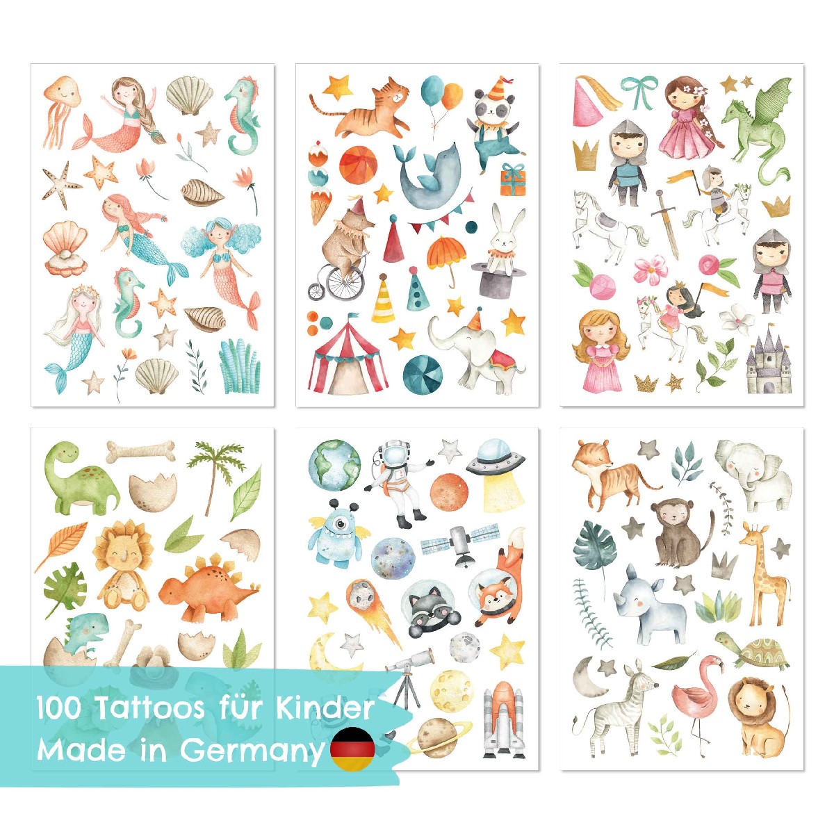 Kindertattoo-Set 05: Bunter Mix (100 Stück auf 6 Bögen)