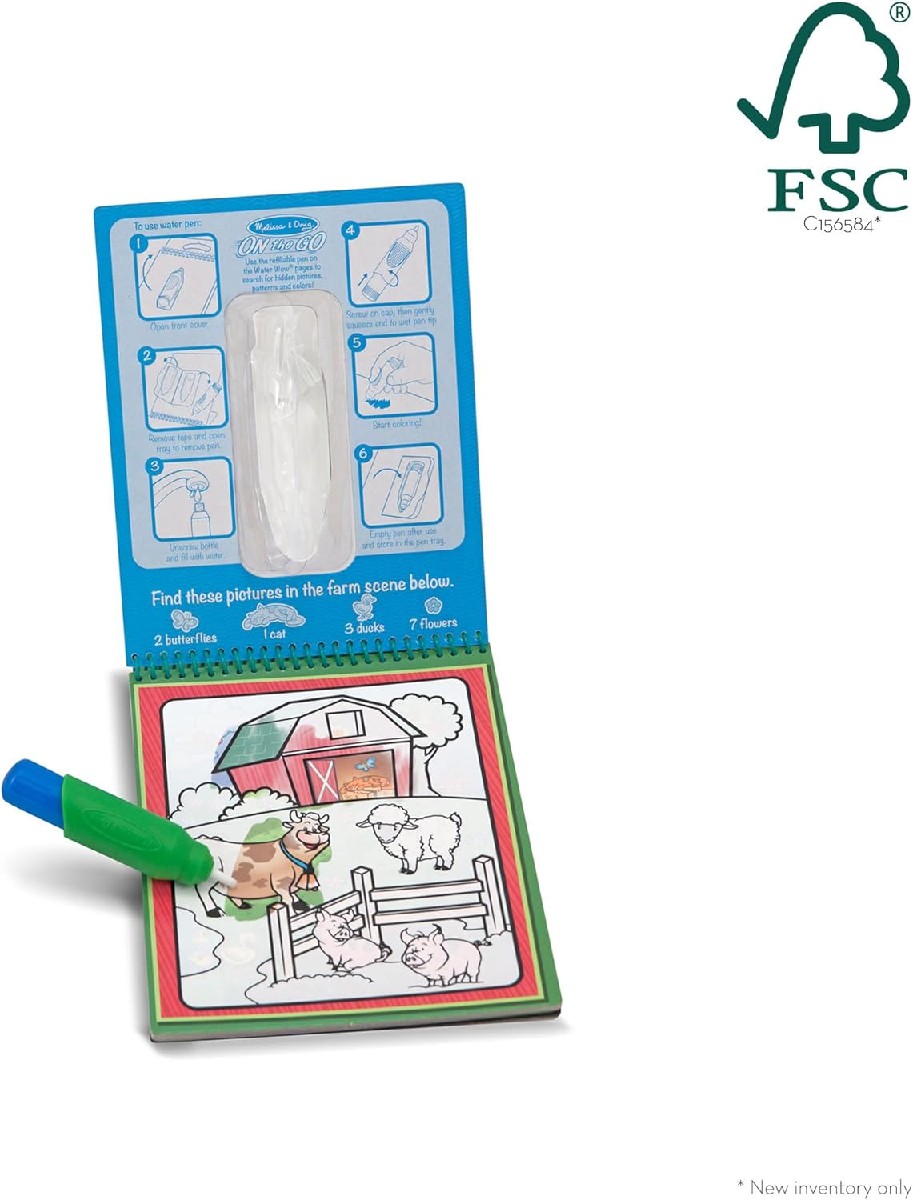 Malen für Kids ganz ohne Farbkleckserei. Dieses faszinierende Mal-mit-Wasser-Malbuch bietet vier wiederverwendbare Seiten und einen nachfüllbaren Wasserstift. Einfach den Stift mit Wasser befüllen und die Umrisse auf den dicken Pappseiten ausmalen. Schon erscheinen die ersten Farben und Muster. Zu jeden Bild gibt es zusätzlich Suchrätsel, durch die Kinder mit ersten Zahlen und Zählen in Berührung kommen. Beim Trocknen der Seiten verschwinden die Farben wieder, so dass der Ausmalspaß jederzeit von vorne beginnen kann. Die Water WOW Wassermalbücher von Melissa & Doug sind zu den unterschiedlichsten Themen wie Fahrzeuge, Tiere und Märchen erhältlich. Melissa & Doug steht seit über 35 Jahren für Spielzeug, das die ganzheitliche Entwicklung von Kindern fördert, Erfolgserlebnisse bietet und somit das Selbstvertrauen stärkt. Das Portfolio umfasst Rollenspielprodukte aus Holz und hochwertigem Kunststoff, das Blockables Holzbausystem sowie Puzzle, Motoriktafeln und weitere Kreativprodukte wie Sticker und Stempelsets.