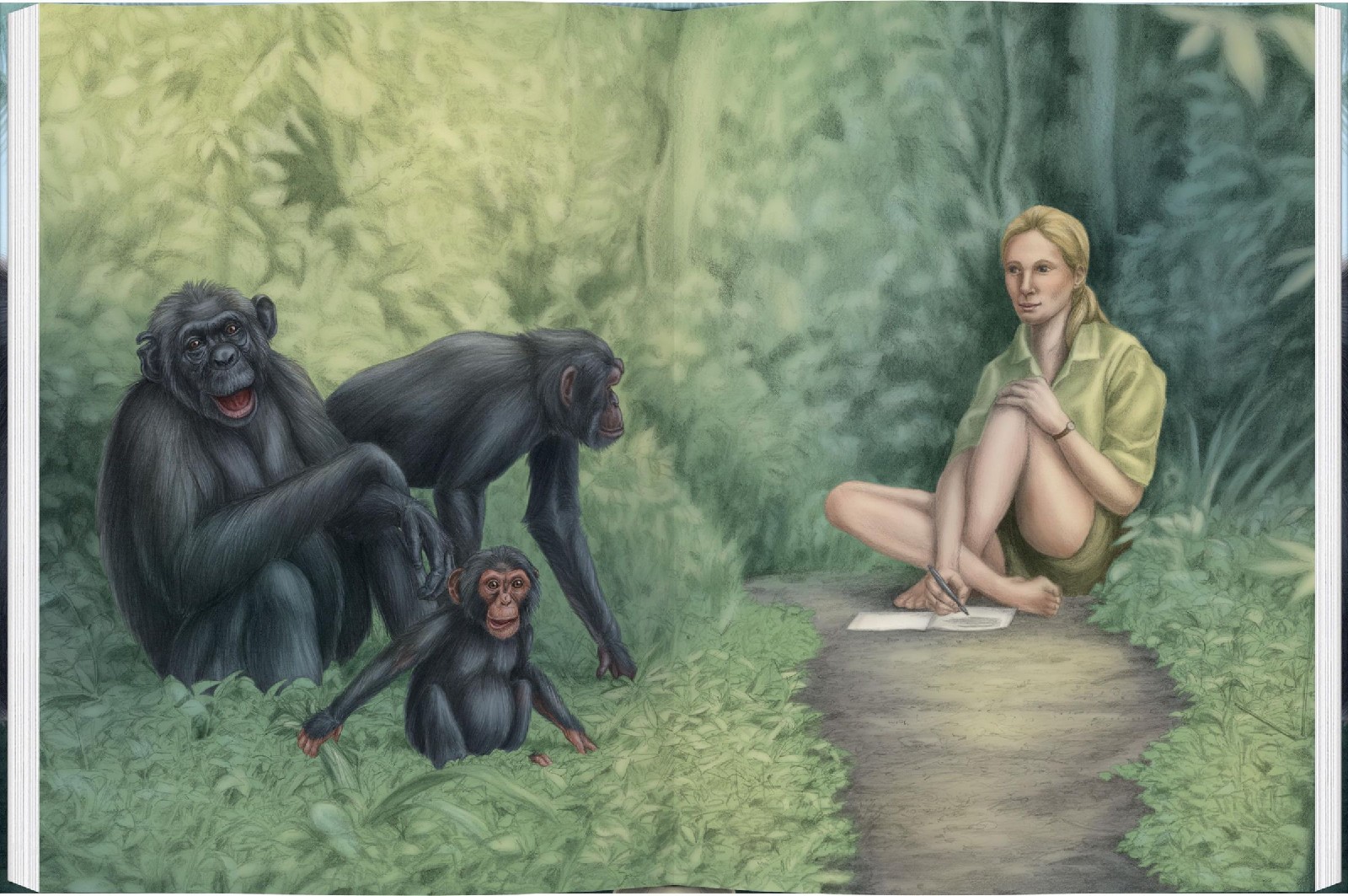 Jane Goodall, die berühmteste Primatenforscherin der Welt, hat schon als Kind davon geträumt, einmal wie Tarzan im Dschungel zu leben und den Wildtieren dort ganz nah zu sein. Und sie hat diesen Traum wahr gemacht! Als junge Frau bekommt sie die Chance, im Gombe-Stream-Nationalpark von Tansania eine Gruppe wilder Schimpansen zu beobachten. Sie macht Entdeckungen wie noch kein Forscher vor ihr. Wohl kaum jemand sonst kommt unseren haarigen Verwandten so nah wie sie! Die fesselnd erzählte Geschichte und die naturalistischen, mit viel Atmosphäre gestalteten Illustrationen lassen schon Grundschulkinder den Dschungel und seine Bewohner mit den Augen der jungen Forscherin sehen.