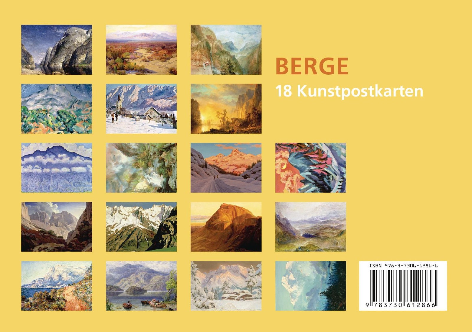 In diesem Postkarten-Set finden sich wunderschöne Bergpanoramen und Bergansichten bekannter Maler. 18 Motive von idyllischen Tälern, gewaltigen Felsmassiven und fantasievollen Wolkenkulissen laden zum Träumen ein. Die Motive lassen sich leicht heraustrennen.