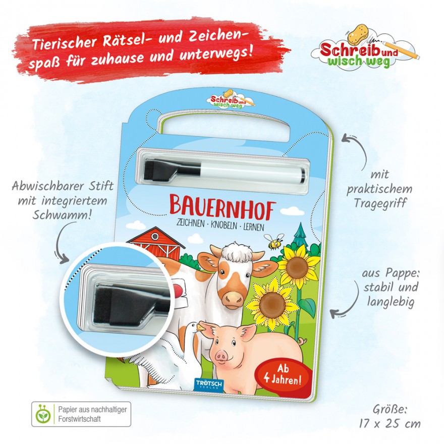Schreib und wisch weg: Bauernhof (mit Stift)