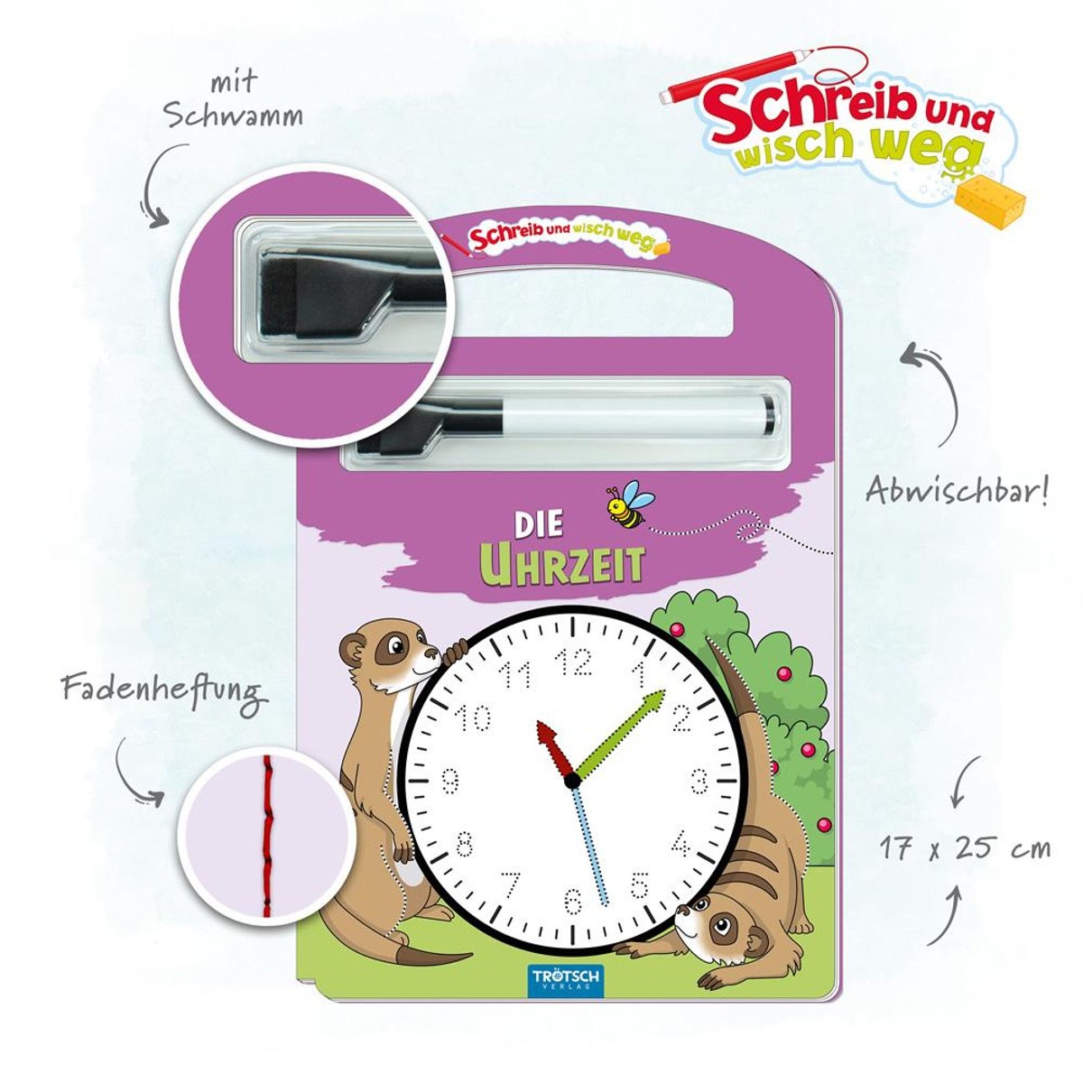 Schreib und wisch weg: Die Uhrzeit (mit Stift)
