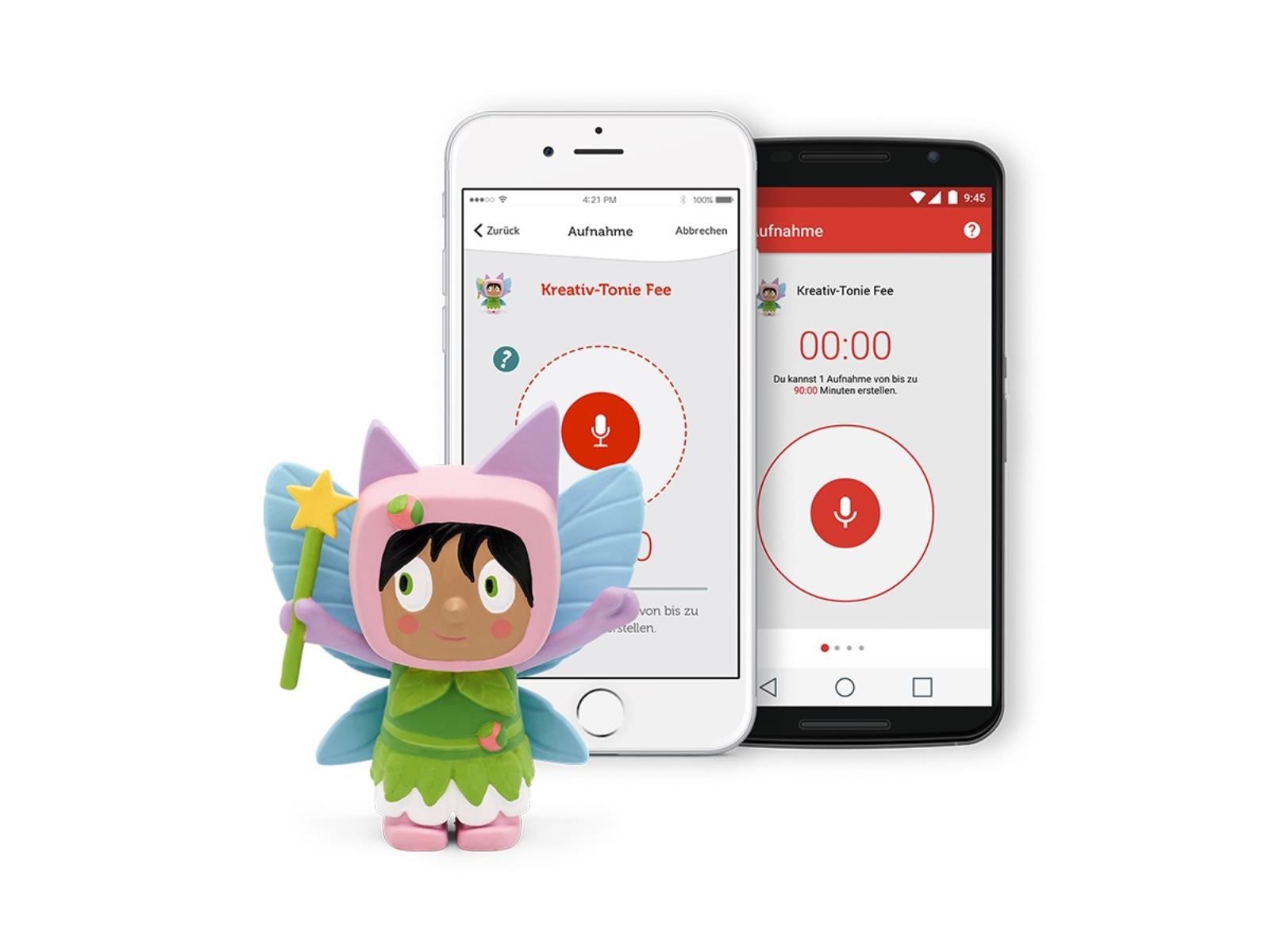 Mit der dazugehörigen, kostenlosen Smartphone-App können eigene Sprachaufnahmen aufgezeichnet und dem Kreativ-Tonie zugewiesen werden.