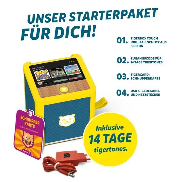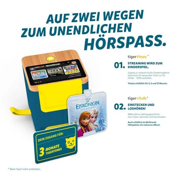 Kindgerechtes Audio-Streaming: Tausende Hörspiele, Hörbücher und Musik nur für Kinder in tigertones (Audio-Streamingdienst). Verbunden mit der tigerbox TOUCH PLUS, können alle Inhalte direkt über die Box abgerufen werden, ganz ohne Smartphone.